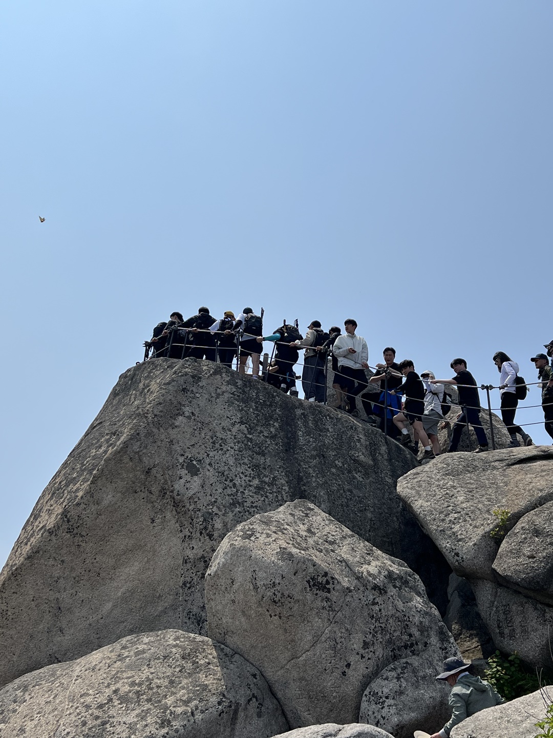 정상은 인증샷을 남기려는 청춘들로 인산인해여서 먼발치에서 바라만 보고 하산을 시작하였다.