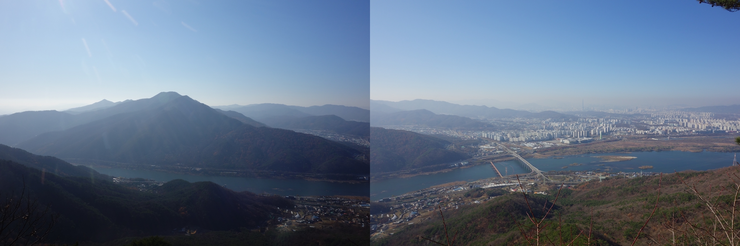 예봉산을 오르며 뒤를 돌아보자 하남 검단산과 팔당대교도 그 자리에 잘 있었고,