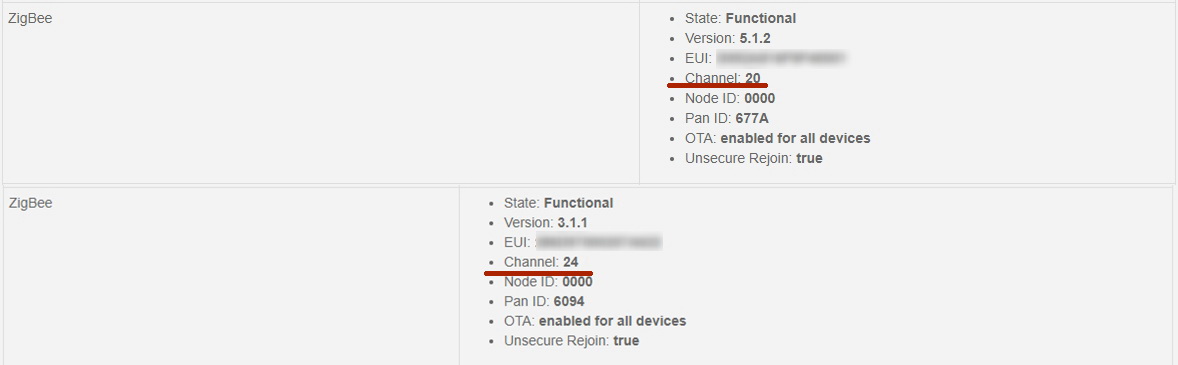 샤오미 게이트웨이와 아카라 M2 허브는 채널 변경이 불가하고, 특별한 이상이 없어서 이 또한 스킵하였으며,