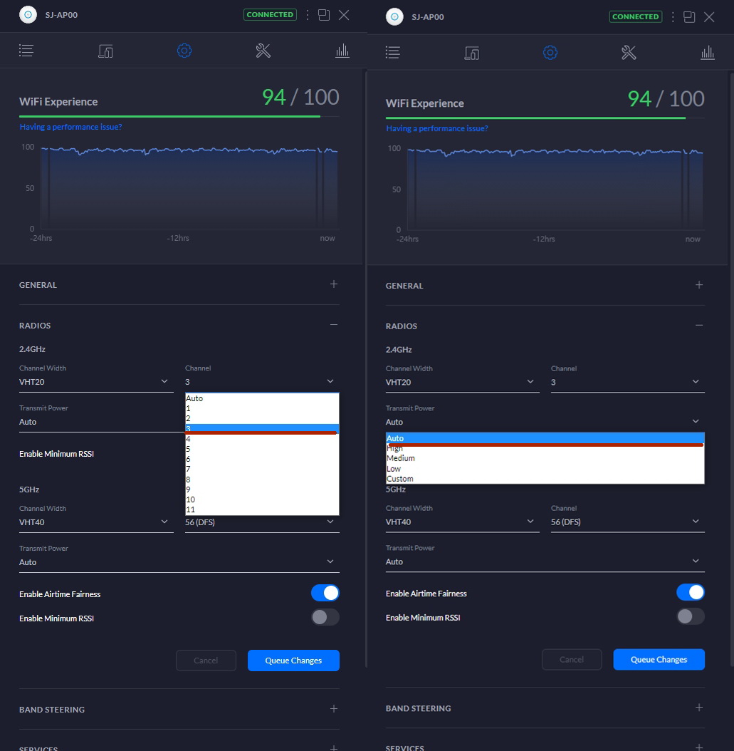 2.4 GHz 와이파이 채널은 UniFi 컨트롤러에 RF 환경 스캐닝 도구가 있어서,