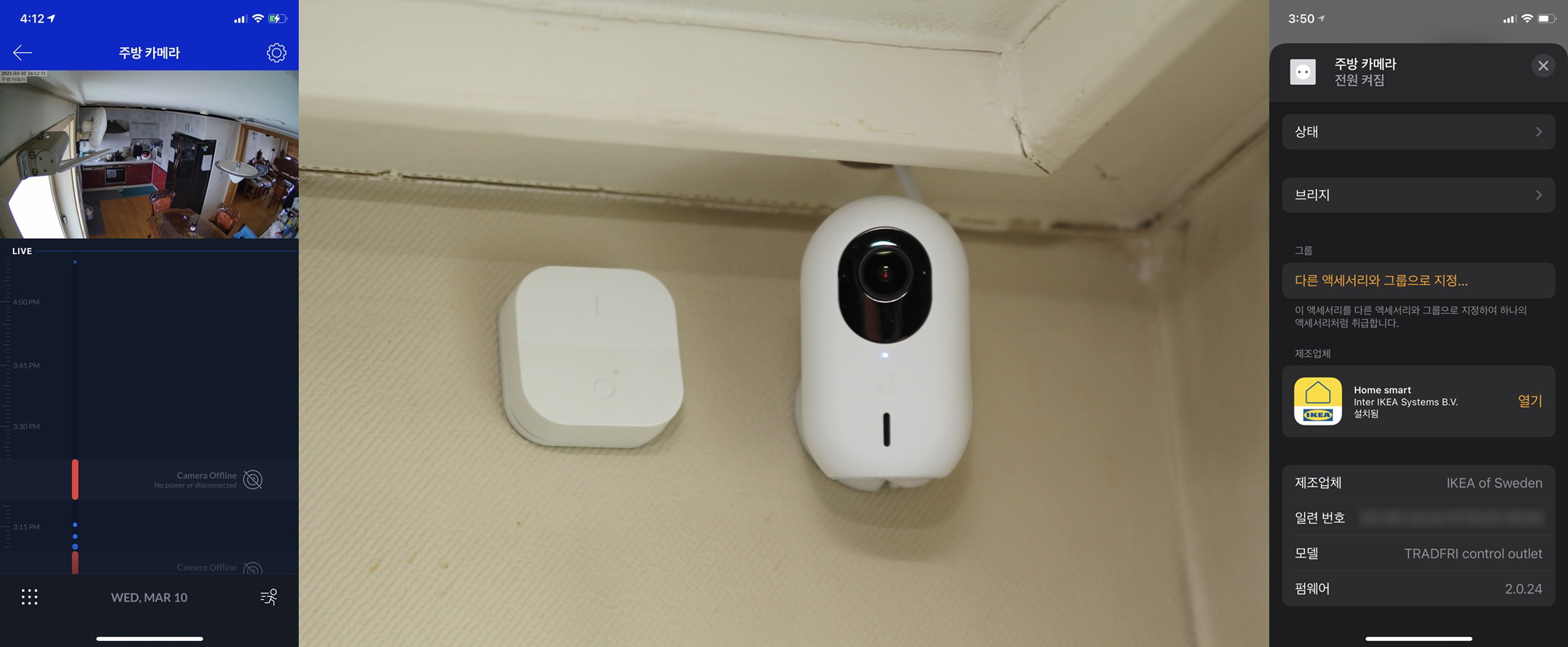 실내 카메라에 이케아 플러그와 딤머 스위치를 연결하여 필요시 켜고 끄도록 하였다.
