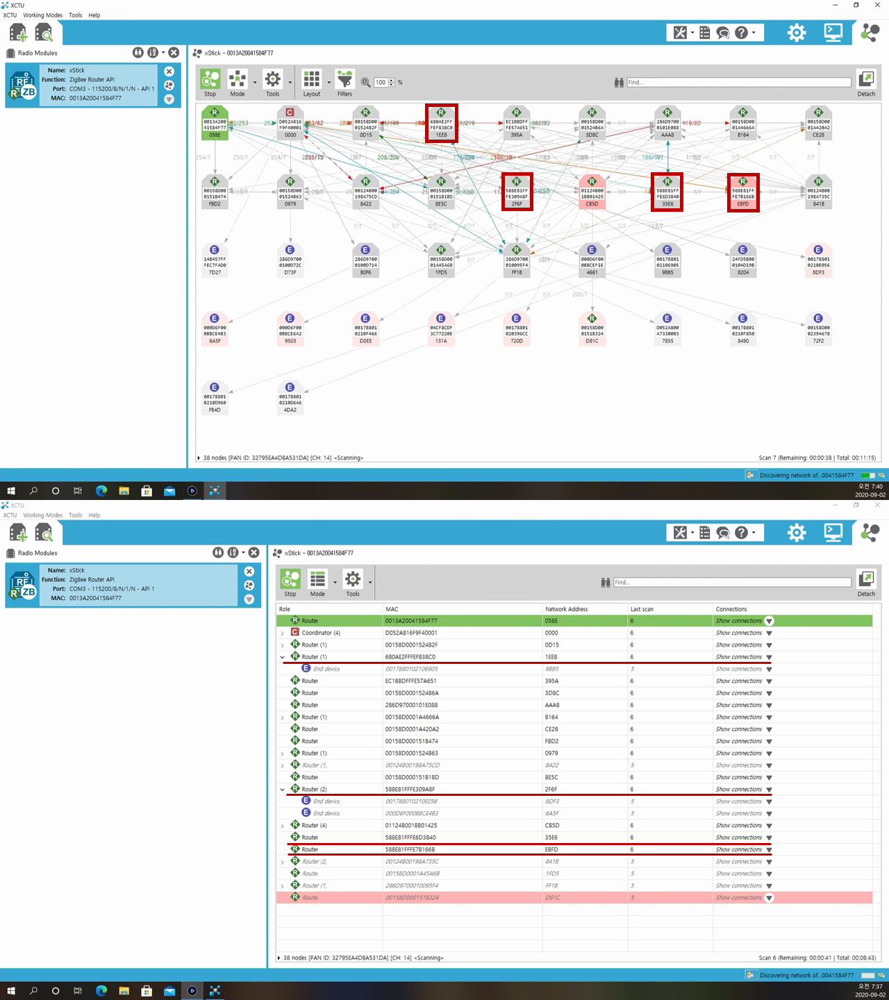 지그비 네트워크가 자리를 잡은 다음날에 Xstick으로 지그비맵을 그려 보았는데,
