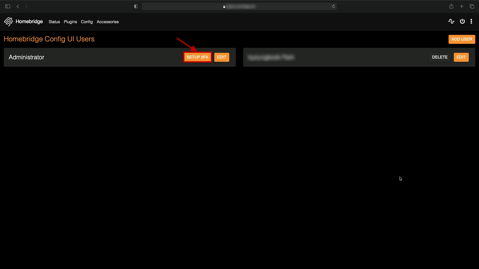 홈브릿지에 비밀번호로 로그인하여 User Accounts에서 'SETUP 2FA'를 누른다.