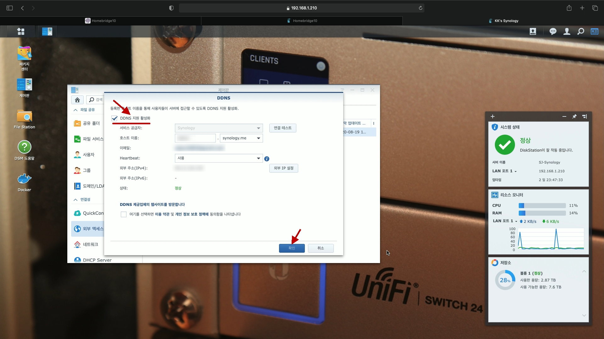 1) 시놀로지의 [제어판-외부 엑세스-DDNS]에서 DDNS를 활성화시키고,