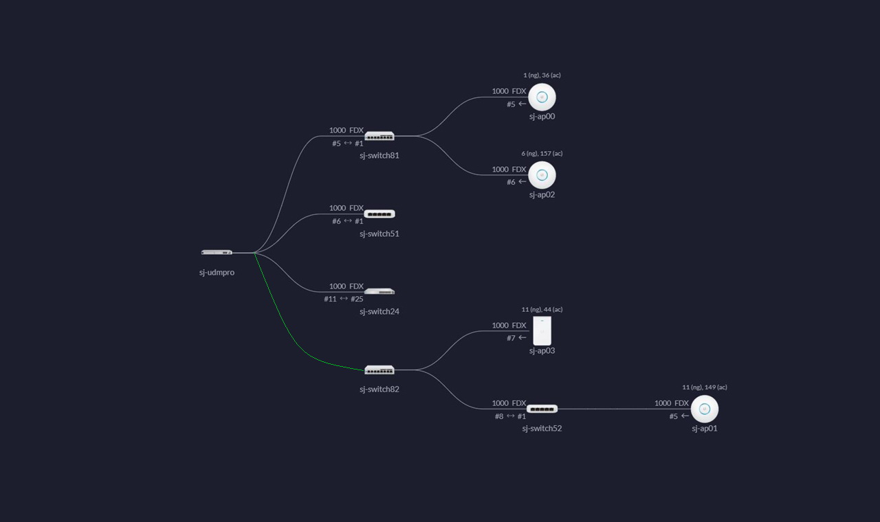 컨트롤러 Topology Map에서는 UDM Pro와 Switch 82 사이가 끊어진 것으로 표현되고 있다.