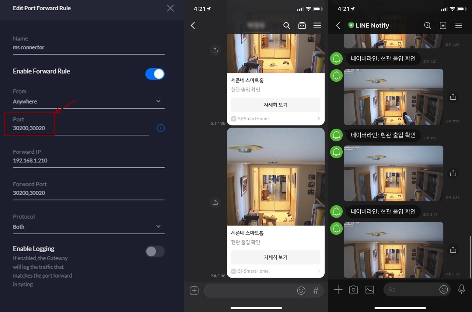 삽질을 하다가 혹시나 하는 마음에 Port Forwarding 순서를 슬쩍 바꾸었더니 화면이 넘어간다.