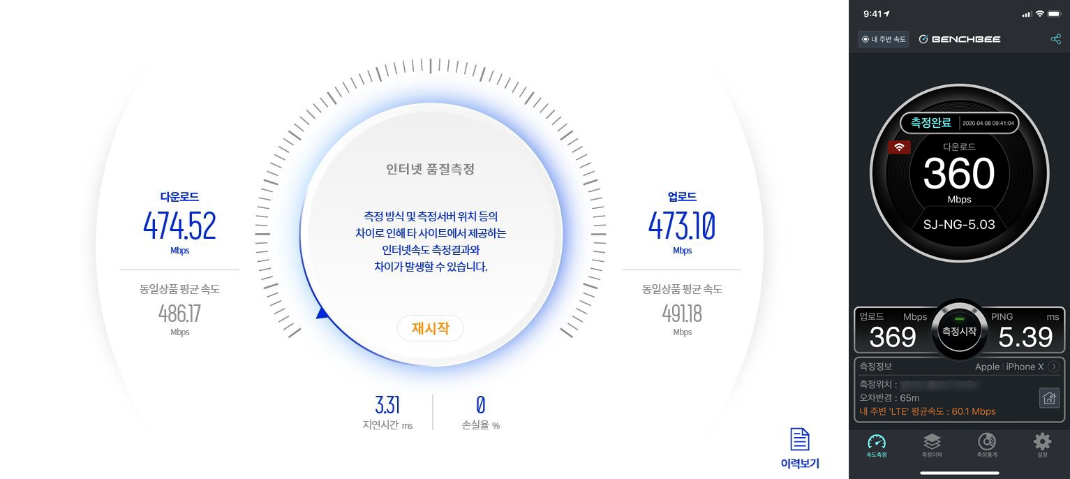 유선랜 470Mb와 무선랜 360Mb 정도의 인터넷 속도가 나와서, 실시간 동영상 스트리밍엔 전혀 문제가 없지 싶다.