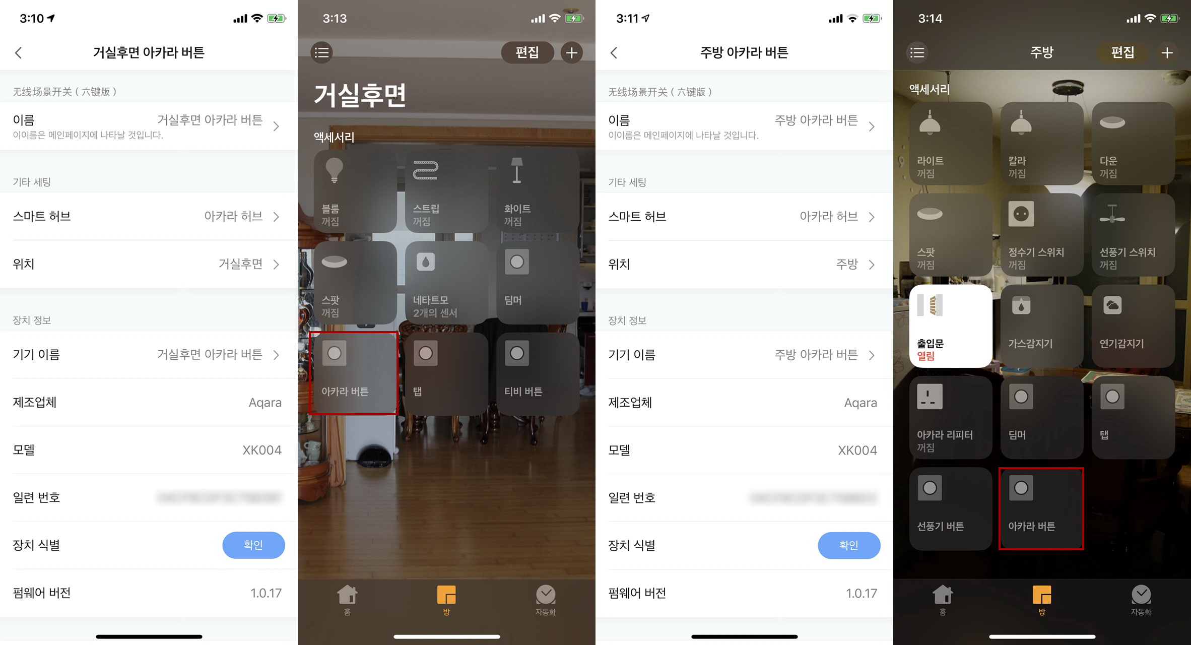 이 놈들은 아카라 무선 버튼이나 미니 버튼과 달리 홈앱에서 18개(6구 * 3동작) 동작 모두 등록이 가능해서,