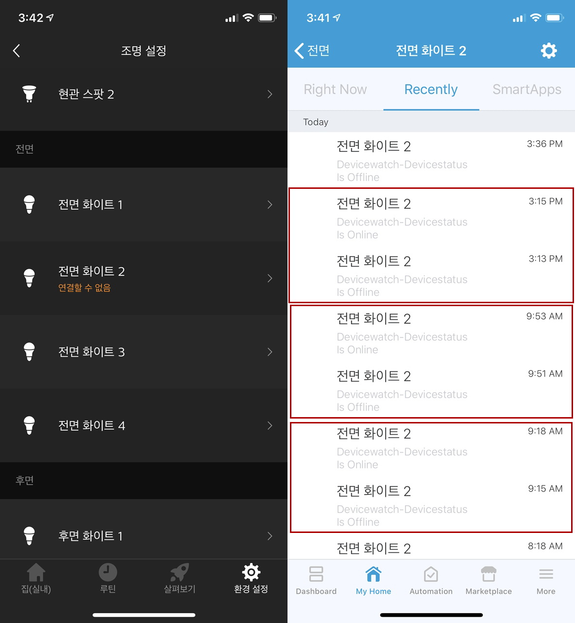 이번 휴 전구 증상은 1단계 마실에 해당되어 스마트홈 운영에는 커다란 문제가 없었지만,