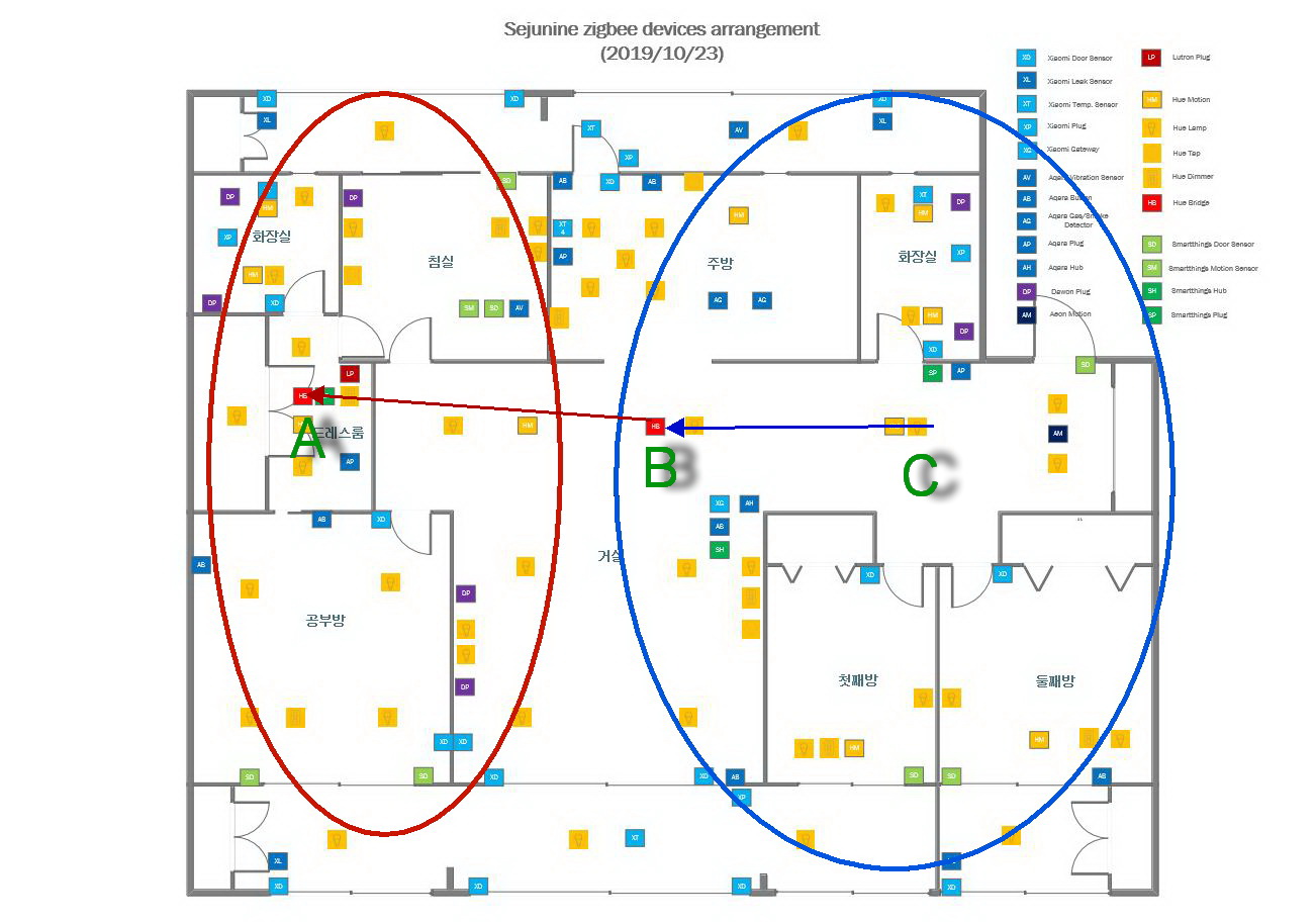 이번에 실제 서비스하는 휴 전구들과 조금 더 가까운 A와 B 위치로 휴 브릿지를 이동하였다.