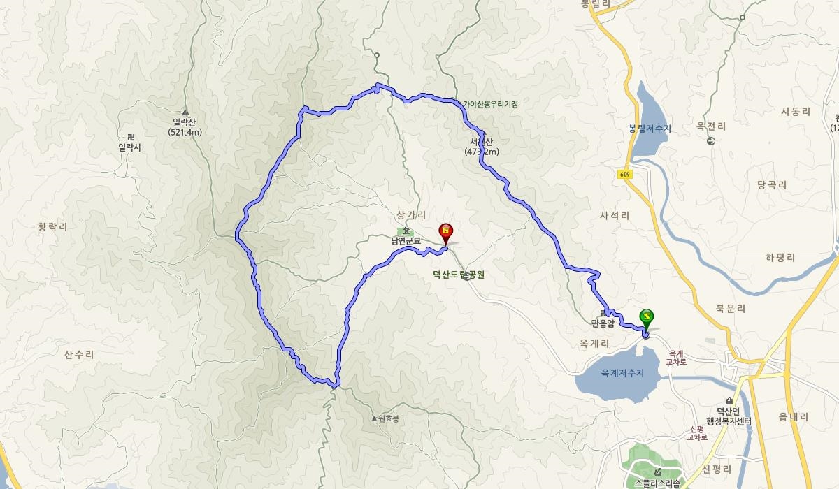 오전 10시경에 옥계저수지 들머리를 출발하여 서원산, 옥양봉, 석문봉, 가야봉에 올랐다가,