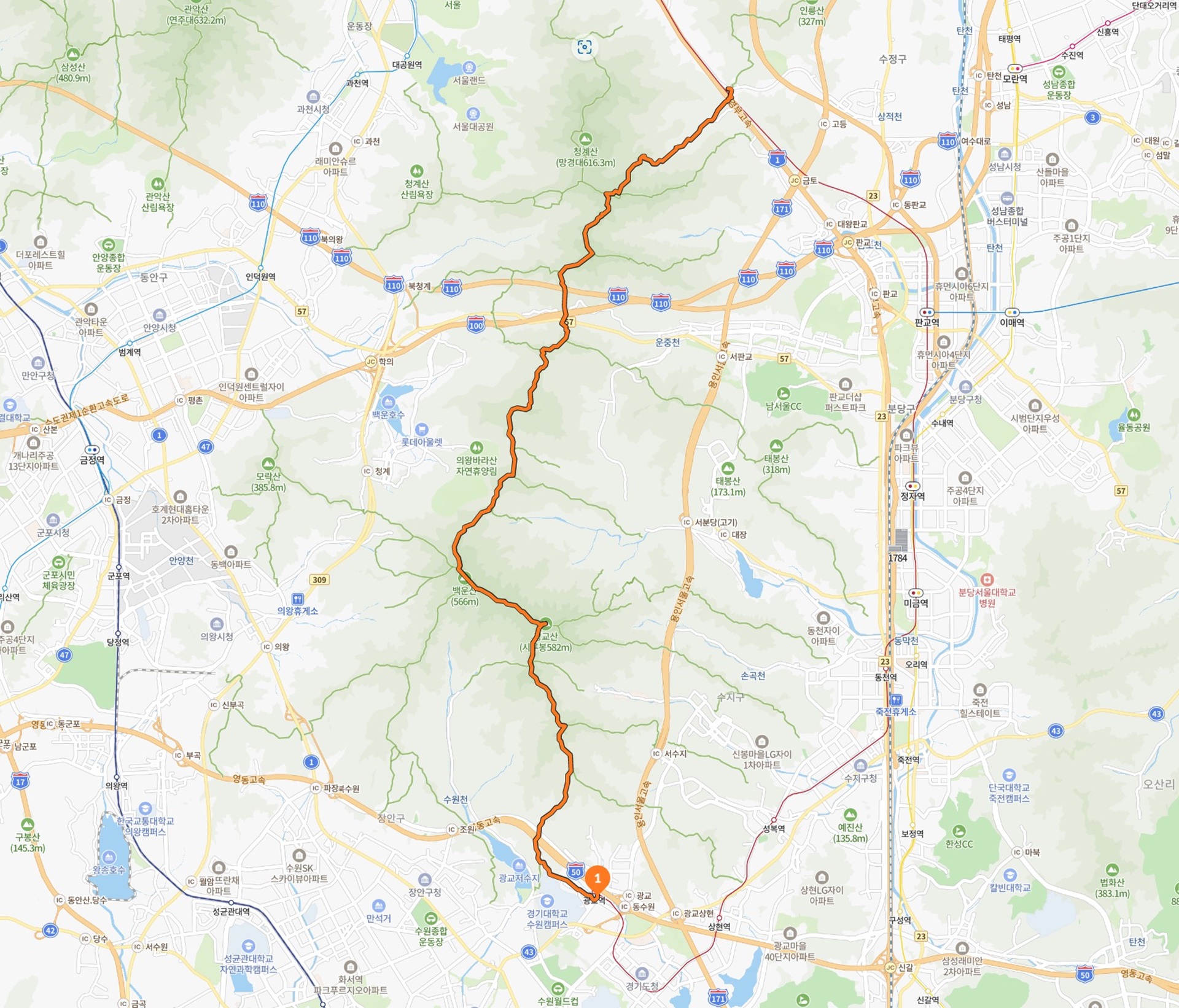 광청종주는 수원, 용인, 의왕, 성남 시계 구간을 지나는데,