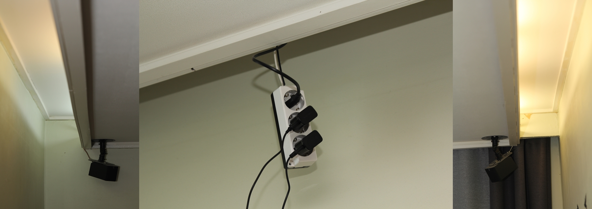 그리고 침대 머리 무드등 공간의 제일 우측과 제일 촤측에 갤럭시 홈 미니 1대씩을 숨겨서 설치하였더니,