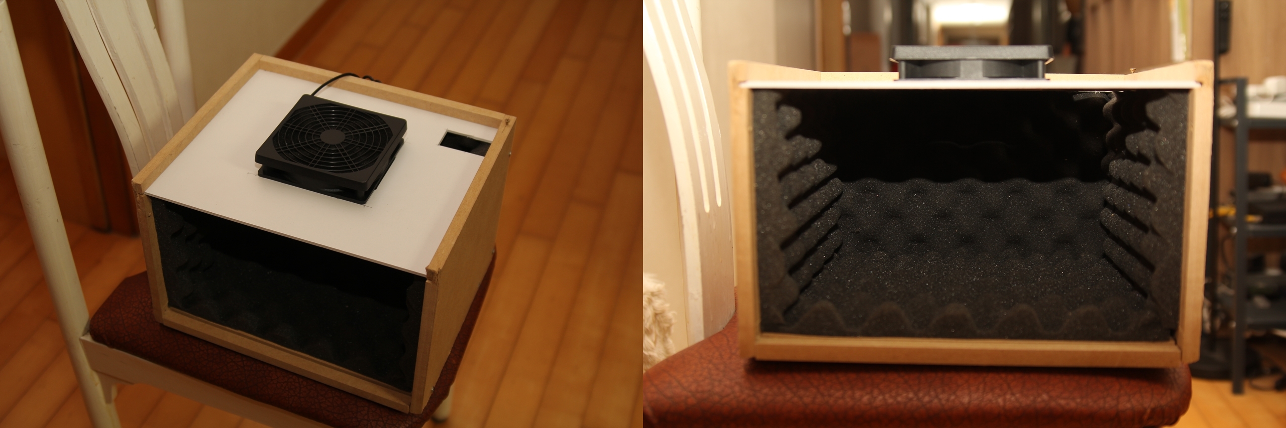 처음에는 문짝까지 달아서 근사한 차음 상자를 만들었으나,