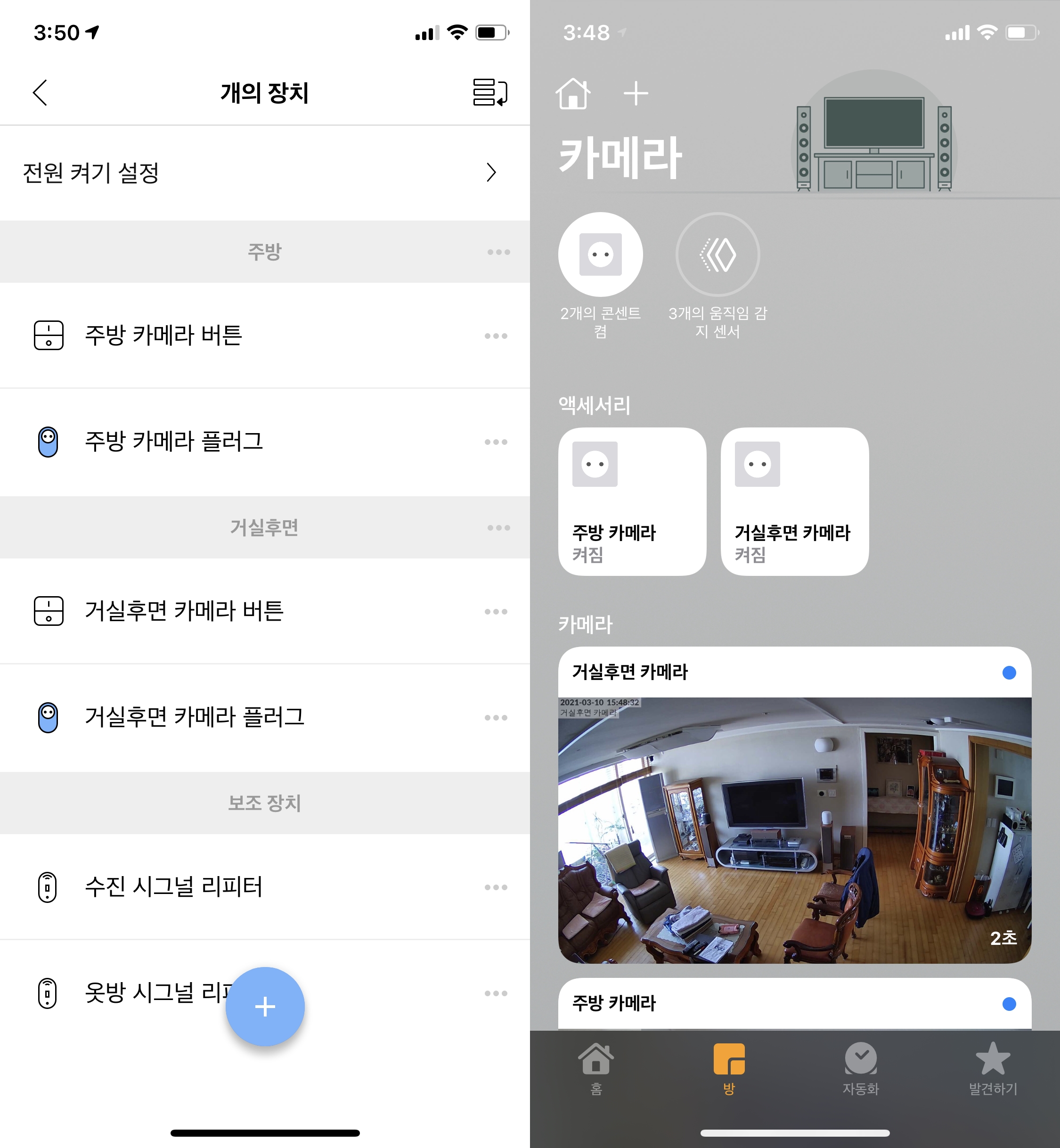 평소에는 자동화 또는 애플 홈앱으로 네트워크 카메라의 전원을 켜고 끄다가,