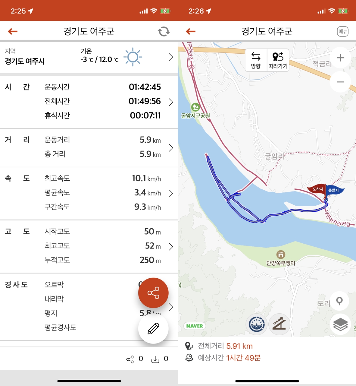 대략 5.9Km의 거리를 1시간 40분 동안 힐링 산책을 하고서,