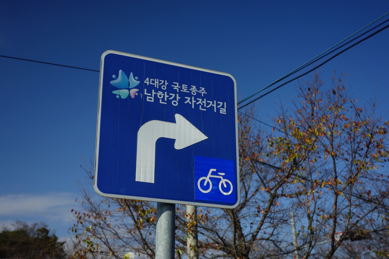 버스 정류장으로 되돌아 나오자 남한강 자전거길 이정표가