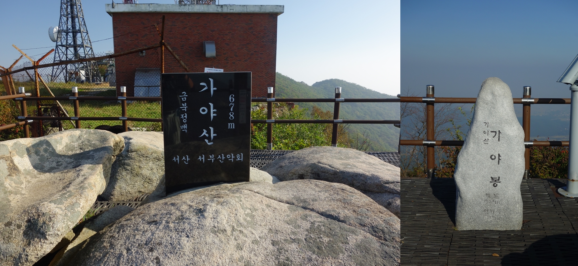 가야봉 정상엔 국내 명산의 많은 봉우리들처럼 레이더 기지가 자리하고 있어서 조금은 흉물스러웠으며,