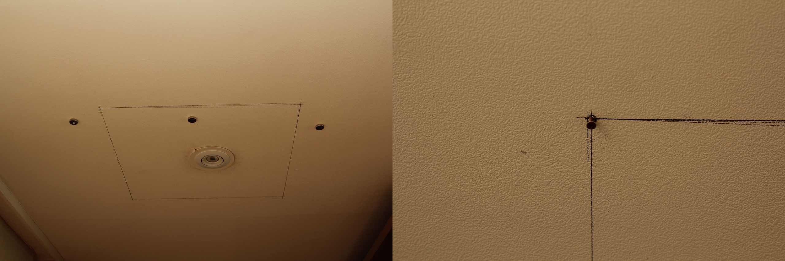 30여분의 사투 끝에 어렵사리 석고보드를 절단하자, 천장속이 너무 궁금해서 후레쉬를 비추며 구경부터 하였다.