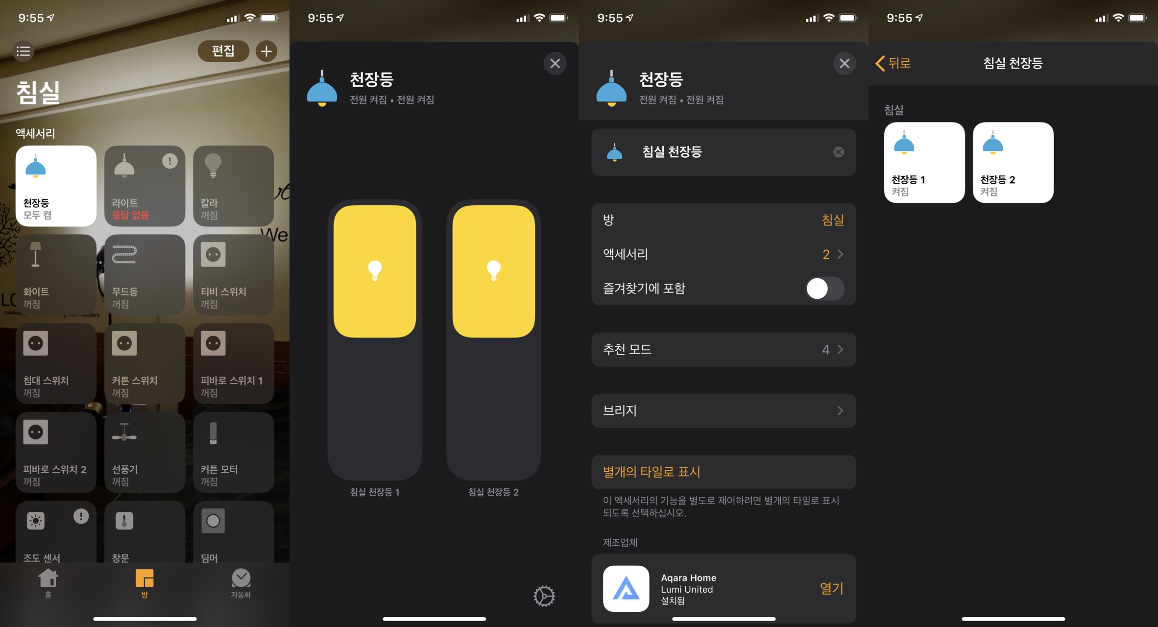 아카라 벽 스위치를 아카라 앱에서 설정을 마치면 애플 홈킷에도 동시에 등록이 되는데,