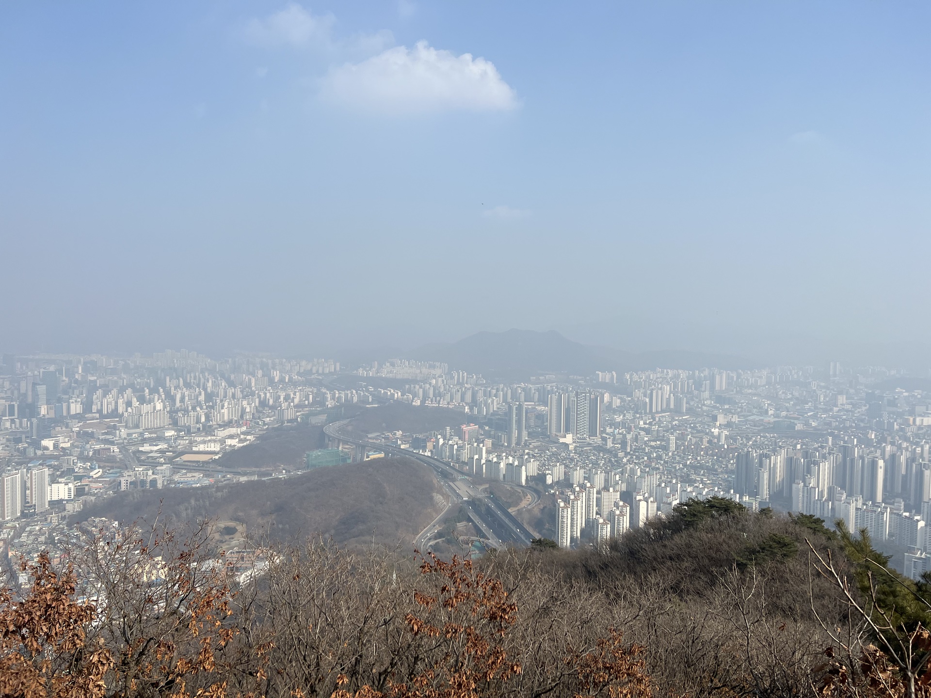 외곽순환도로를 내려다보며 터벅터벅 걸어서, 태을초등학교 옆에서 5시간 반 가량의 수리산 산행을 마쳤다.