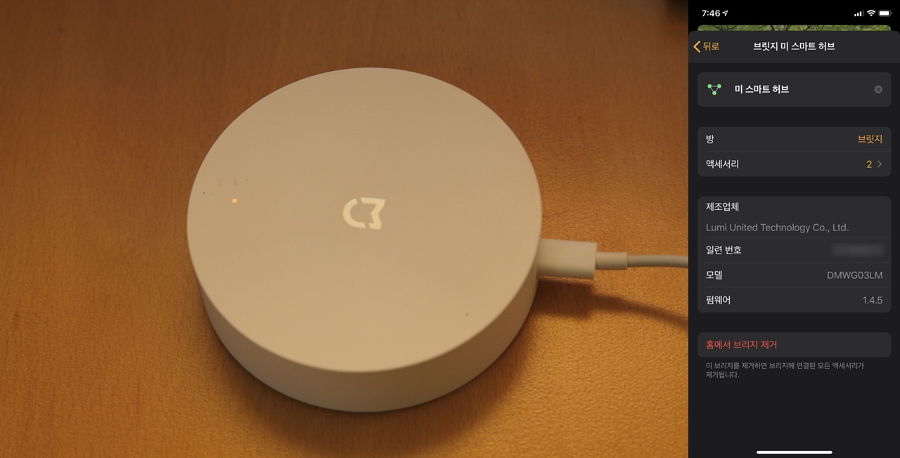4) 미 스마트 허브 (2개 액세서리) : 현재 샤오미 라이트 센서 2개만 테스트 중