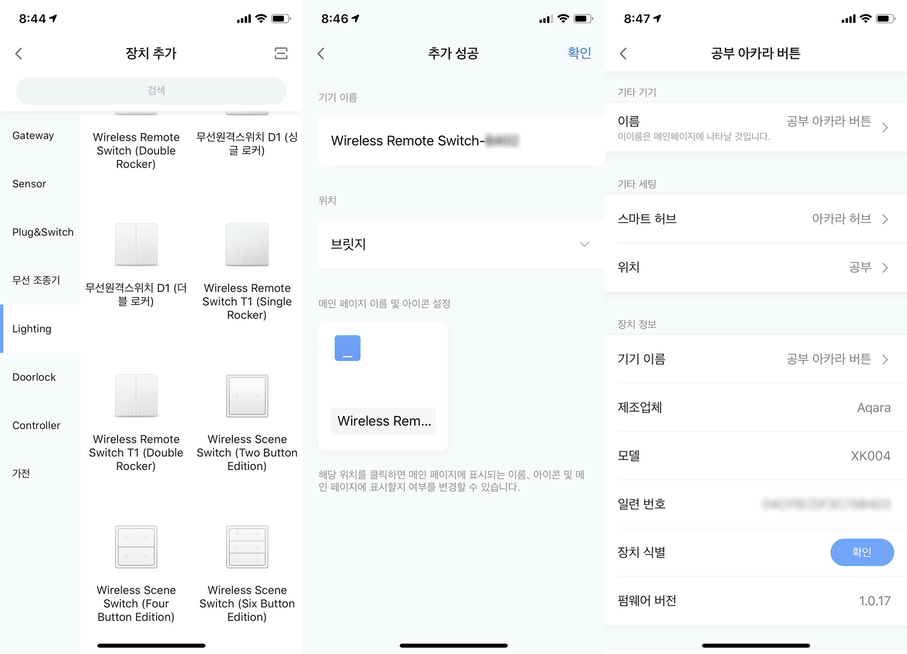 그래서 이 놈들도 똑같이 아카라 허브에 연결하였는데 아주 쉽게 페어링이 되더라.