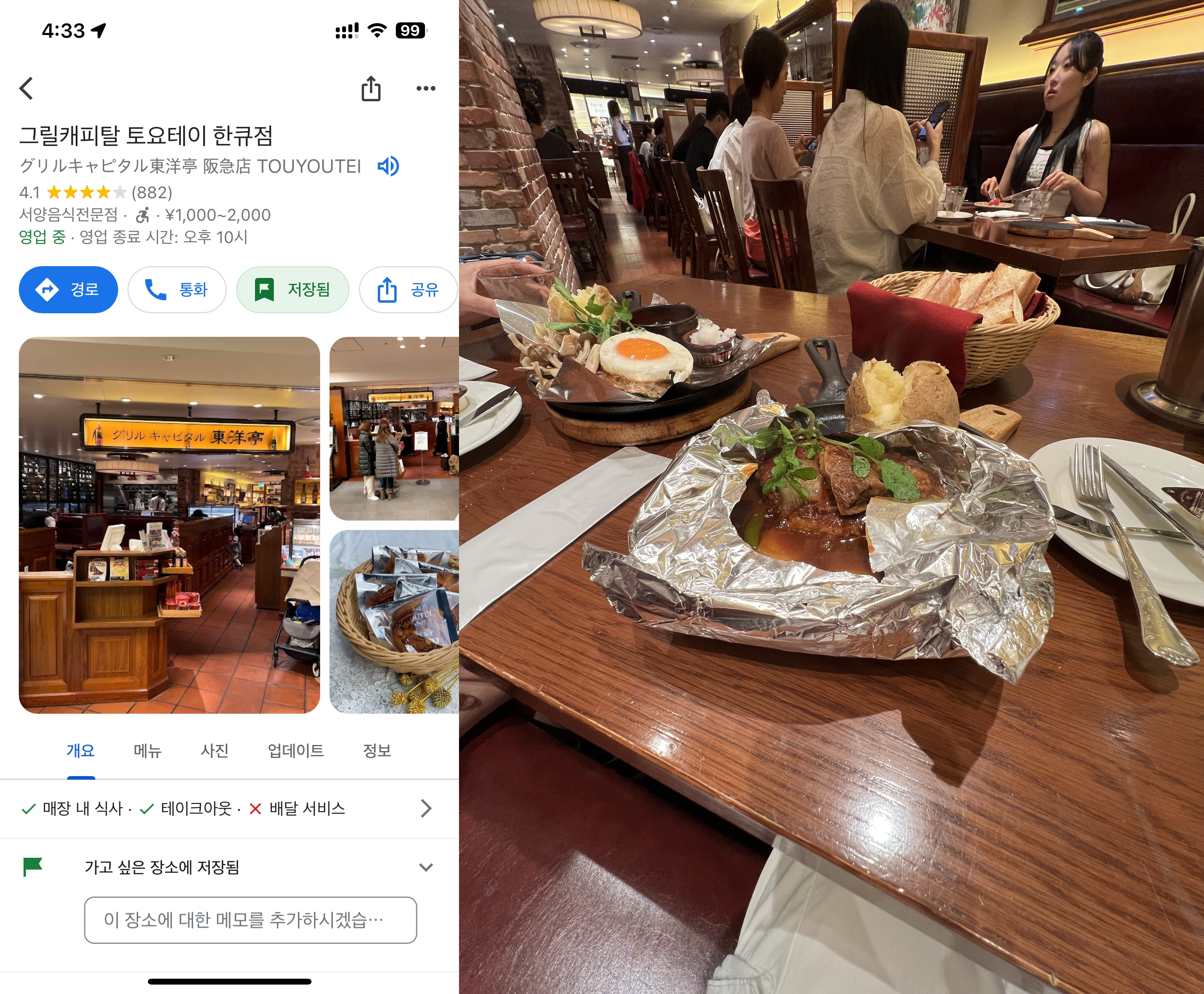 한큐 백화점 12층에 위치한 '그릴캐피탈 토요테이 한큐점'을 찾아감