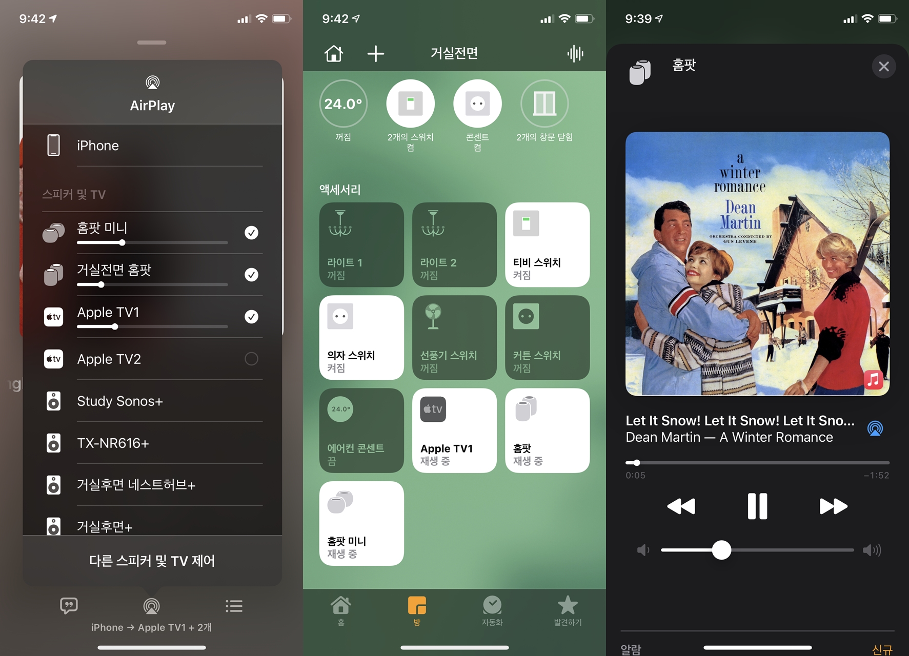 홈팟 미니 2대를 스테레오로 설정하여, 크리스마스 캐럴을 들어 보았는데 확실히 음질이 좋아서,
