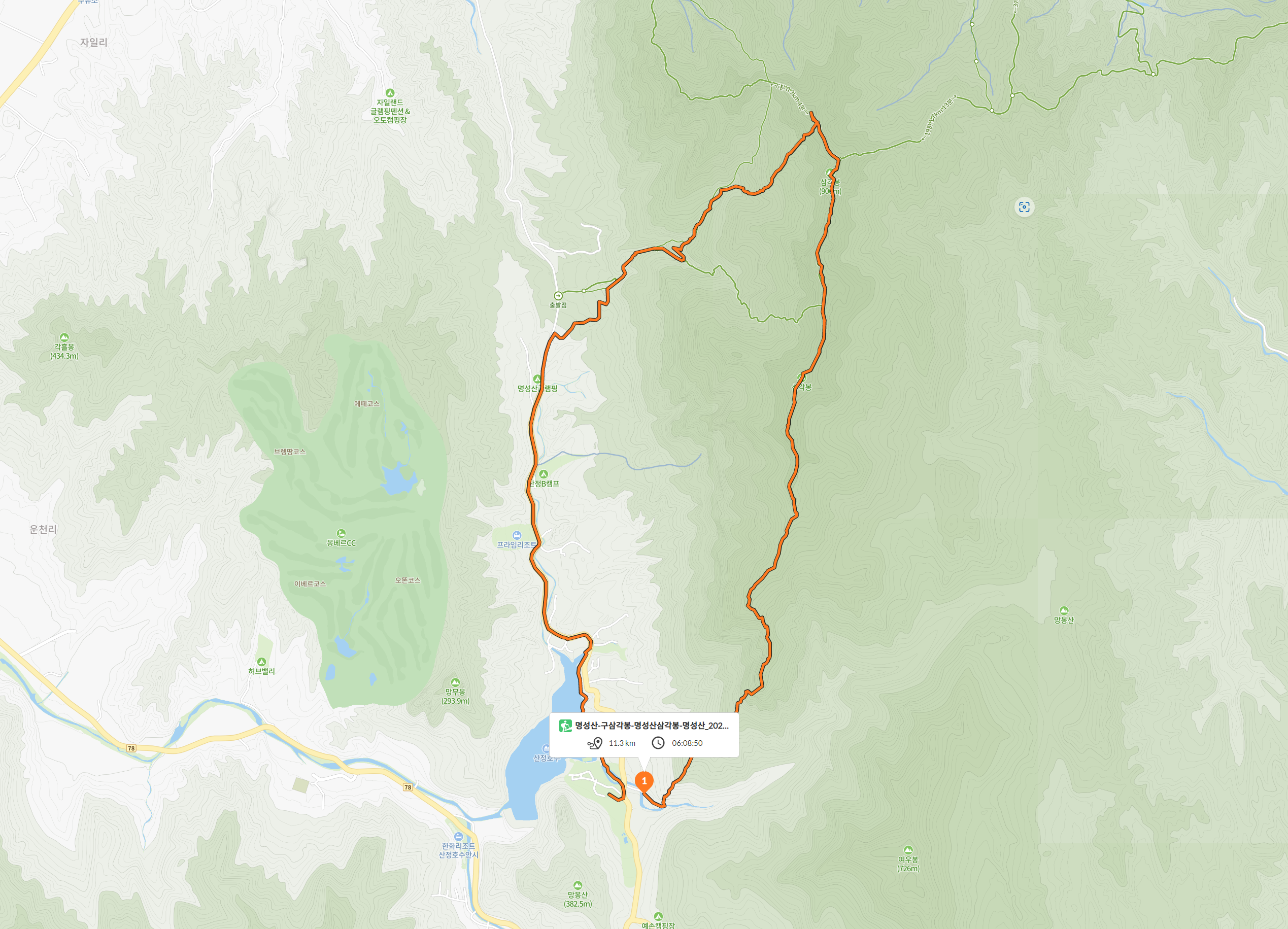 그리고 양쪽으로 펜션이 즐비한 도로를 따라 산정호수까지 터벅터벅 걸어 내려와 산행을 종료하고,