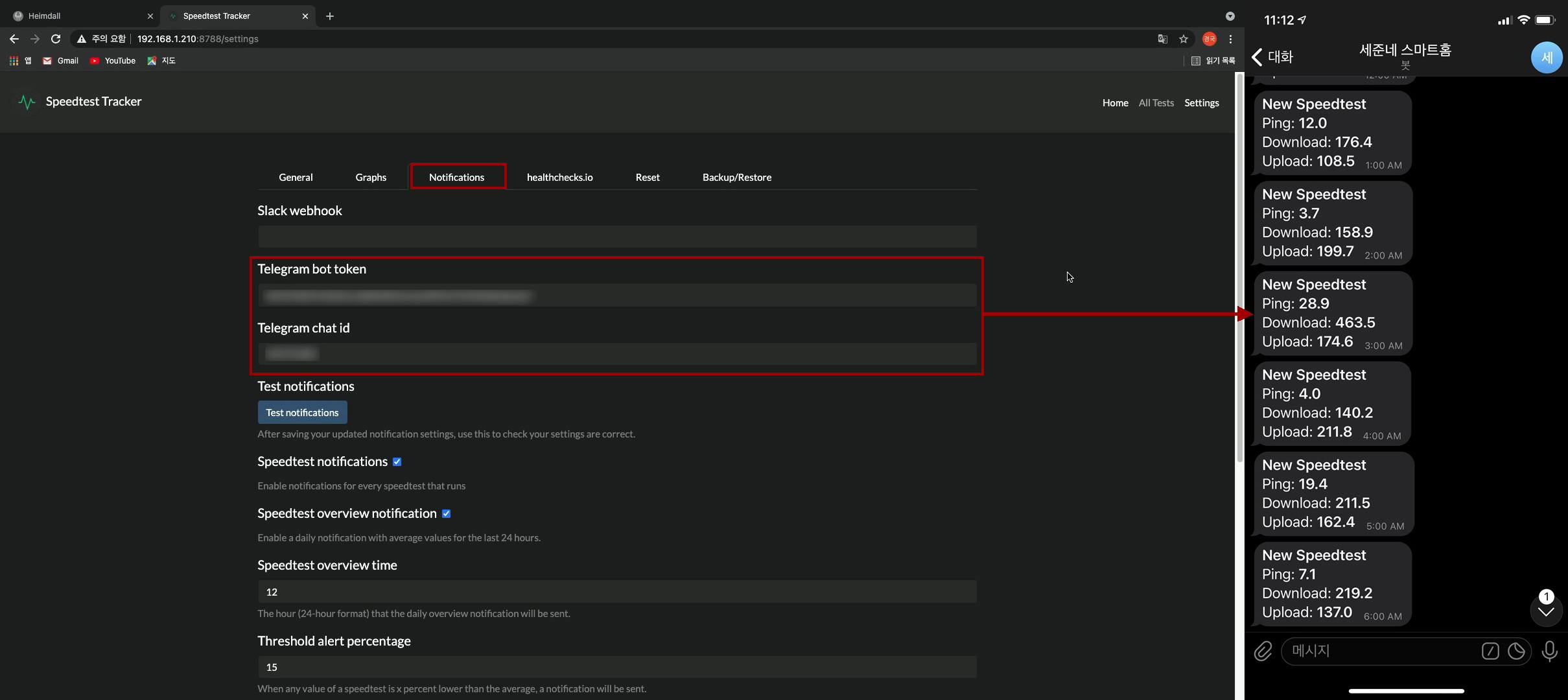 더불어 속도 측정 결과를 텔레그램으로 전송 받기를 원한다면,