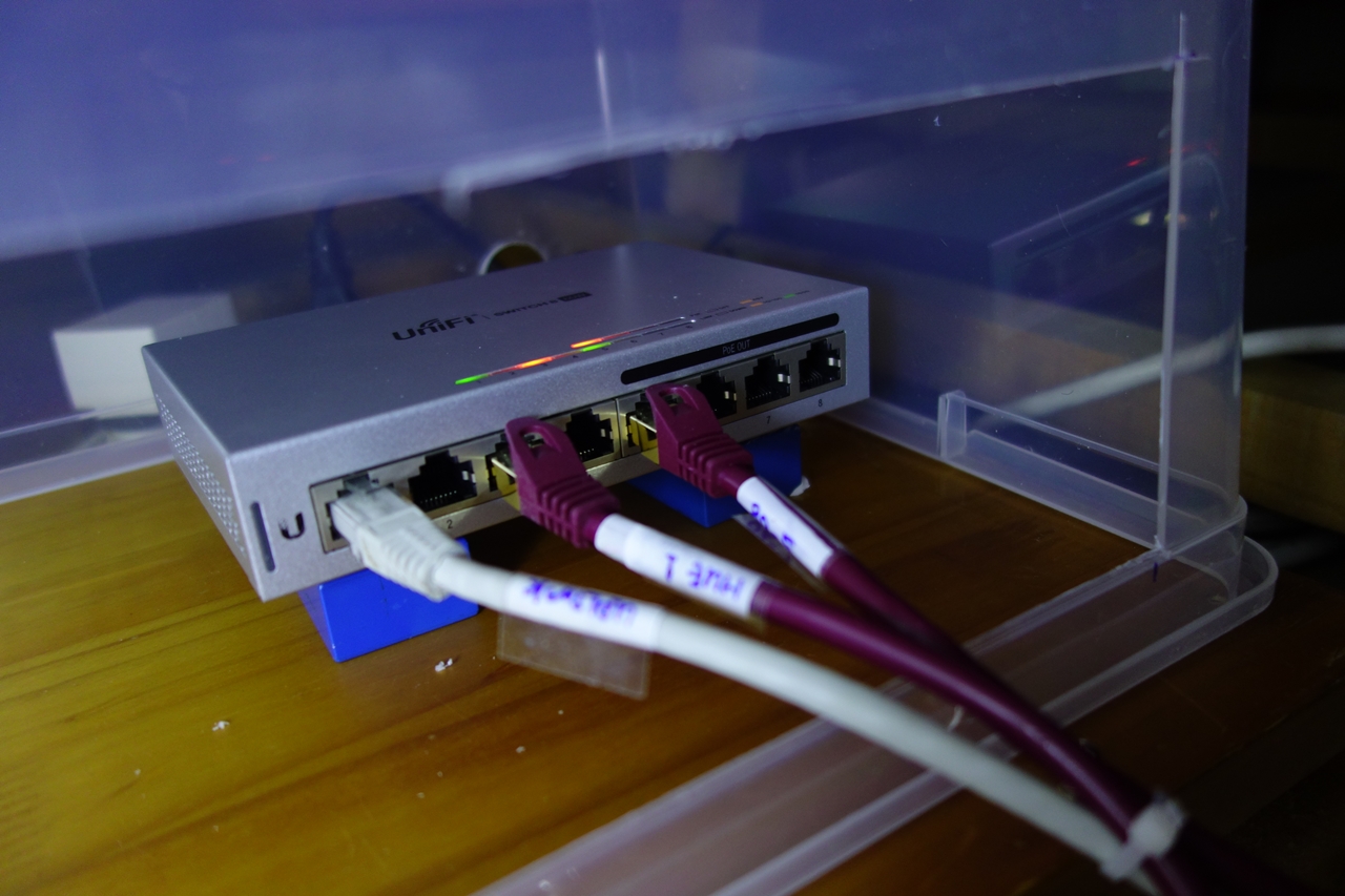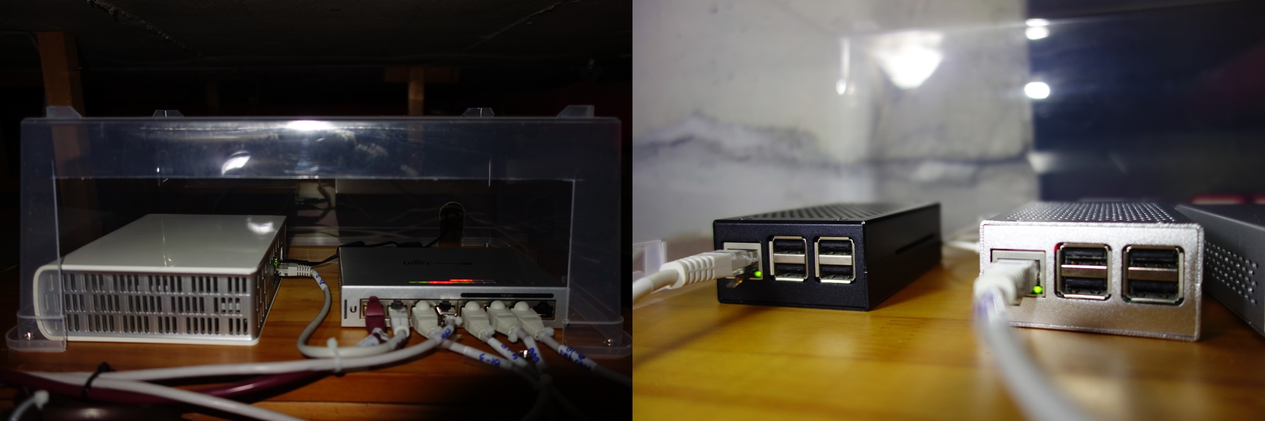 UniFi Switch 8 60W를 이동하여 설치하고, 활용도가 떨어지는 유선 장비인 WD Cloud와 라즈베리파이 2대도 모두 이곳으로 옮겨왔다.