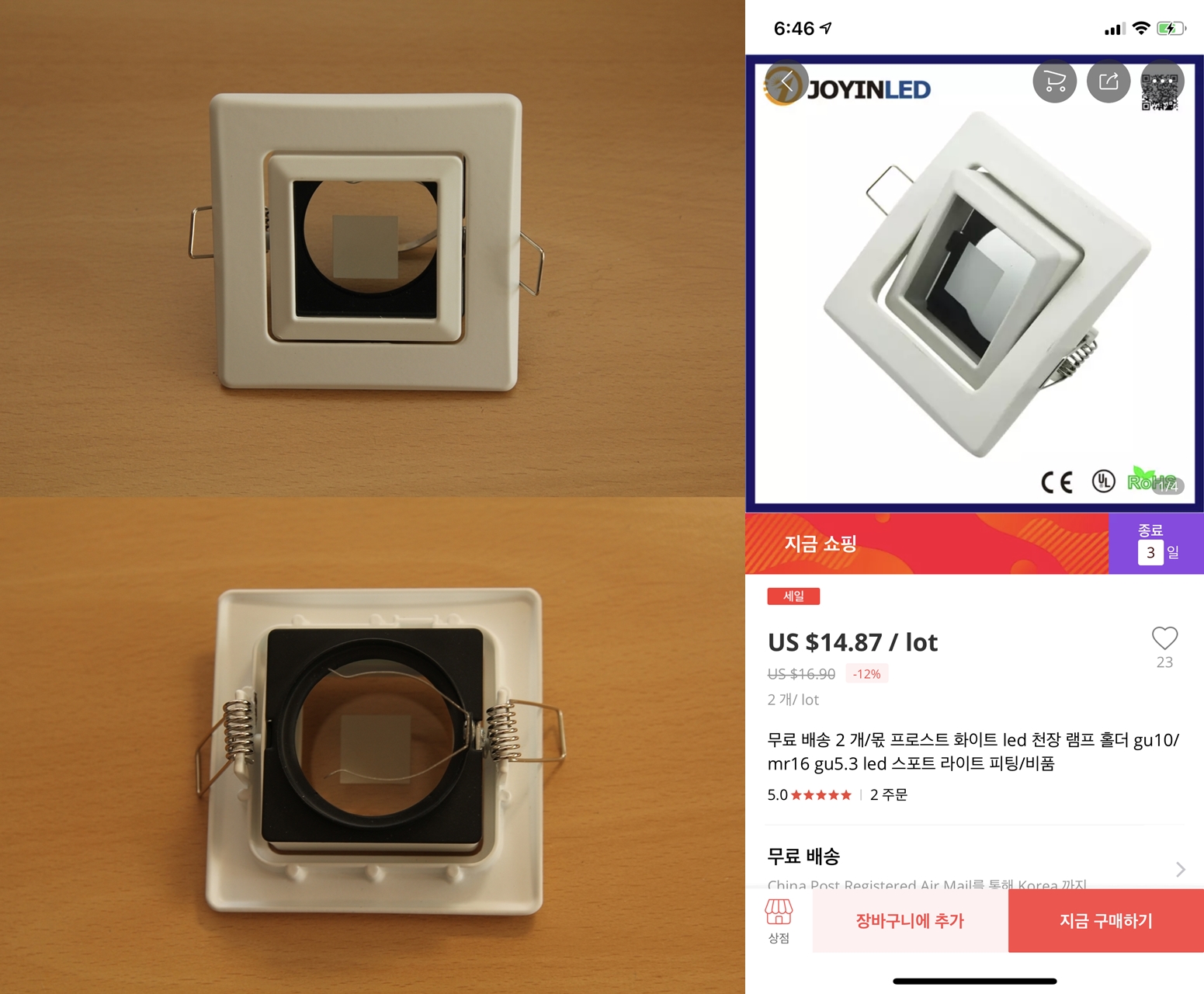 사각형 스팟등 브라켓 1팩(2개)을 14.89달러에 구매하여,