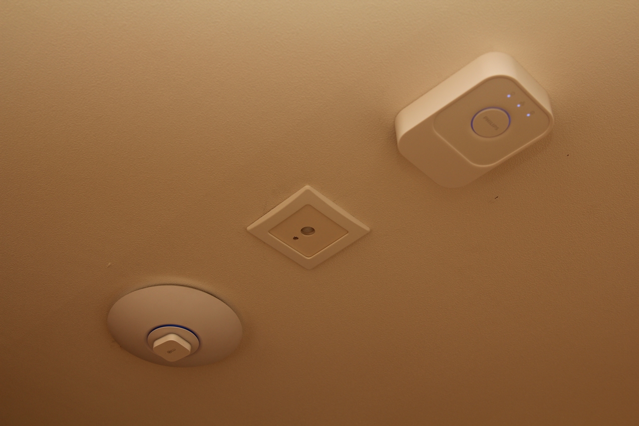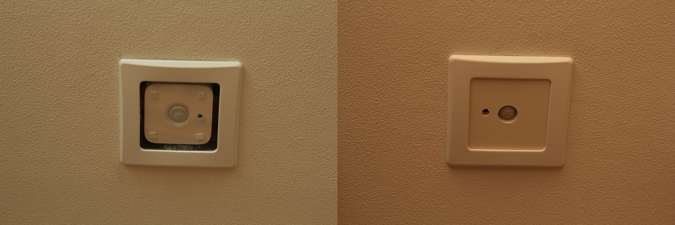 모션센서의 위치 이동이 거의 발생하지 않을 복도 천장 2곳에 시험적으로 매립하여 보았는데,