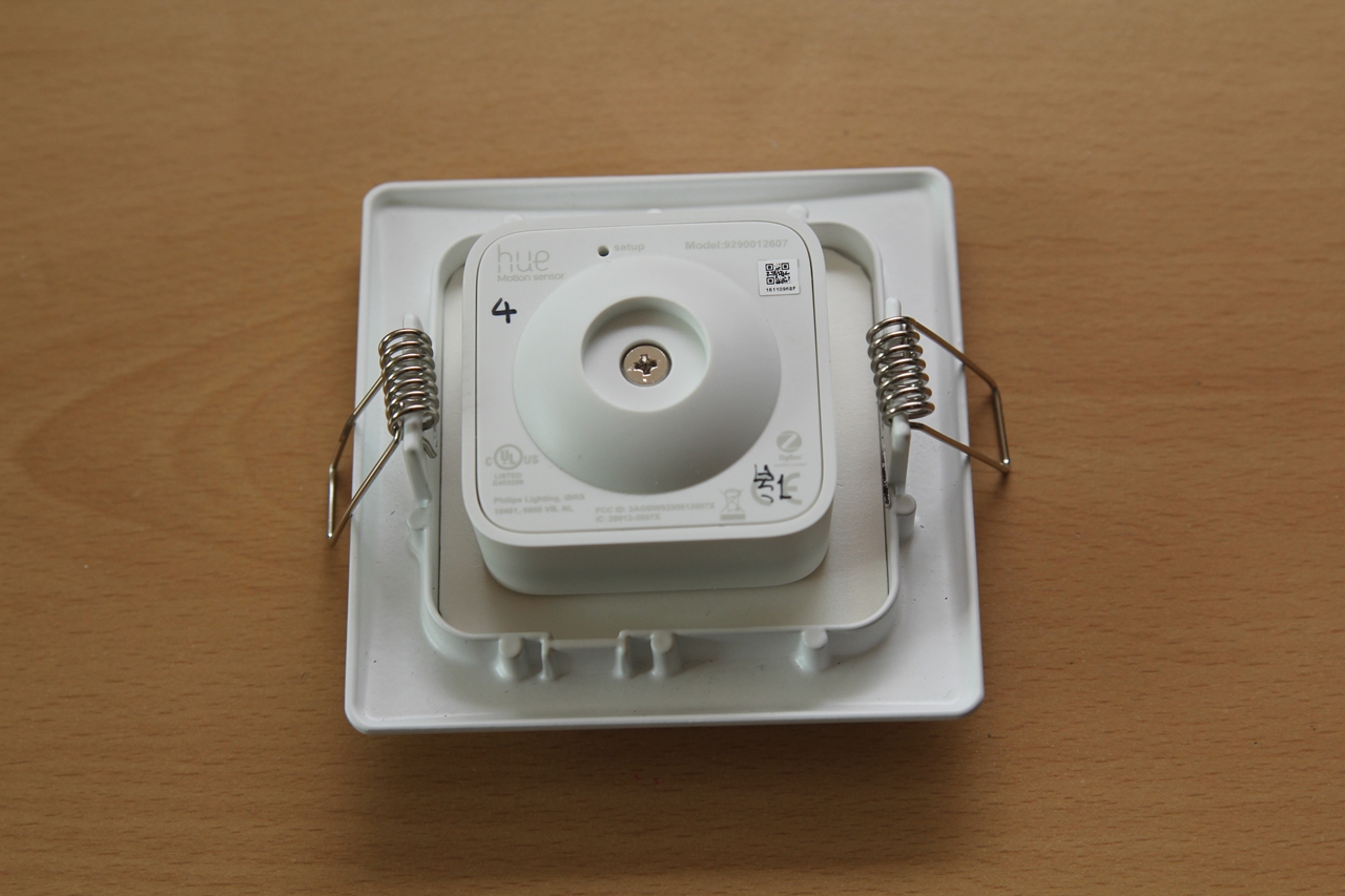내장을 제거한 스팟등 브라켓에 천공한 포맥스 받침을 올리고 필립스 휴 모션센서를 양면테이프로 고정을 하였다.