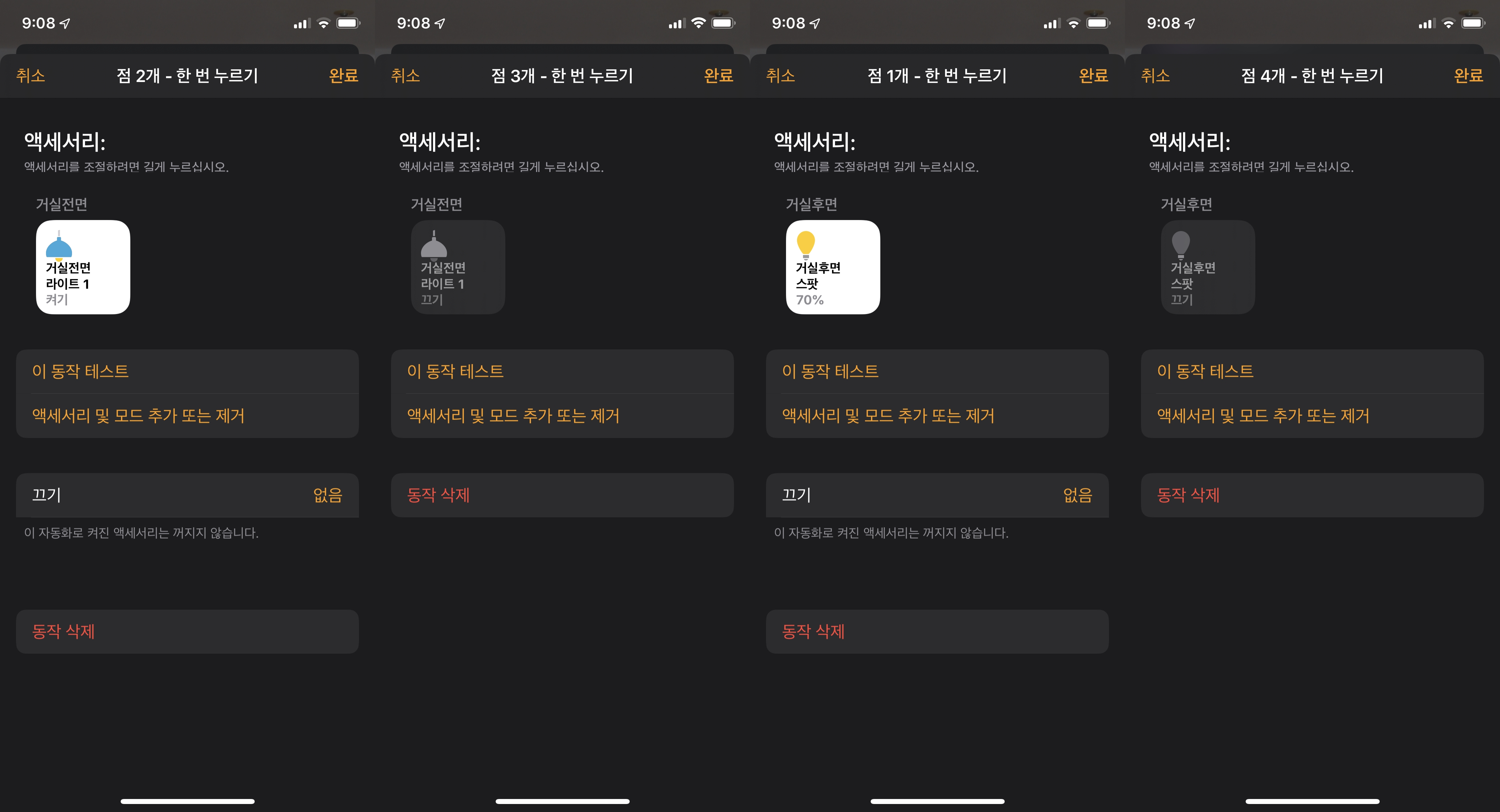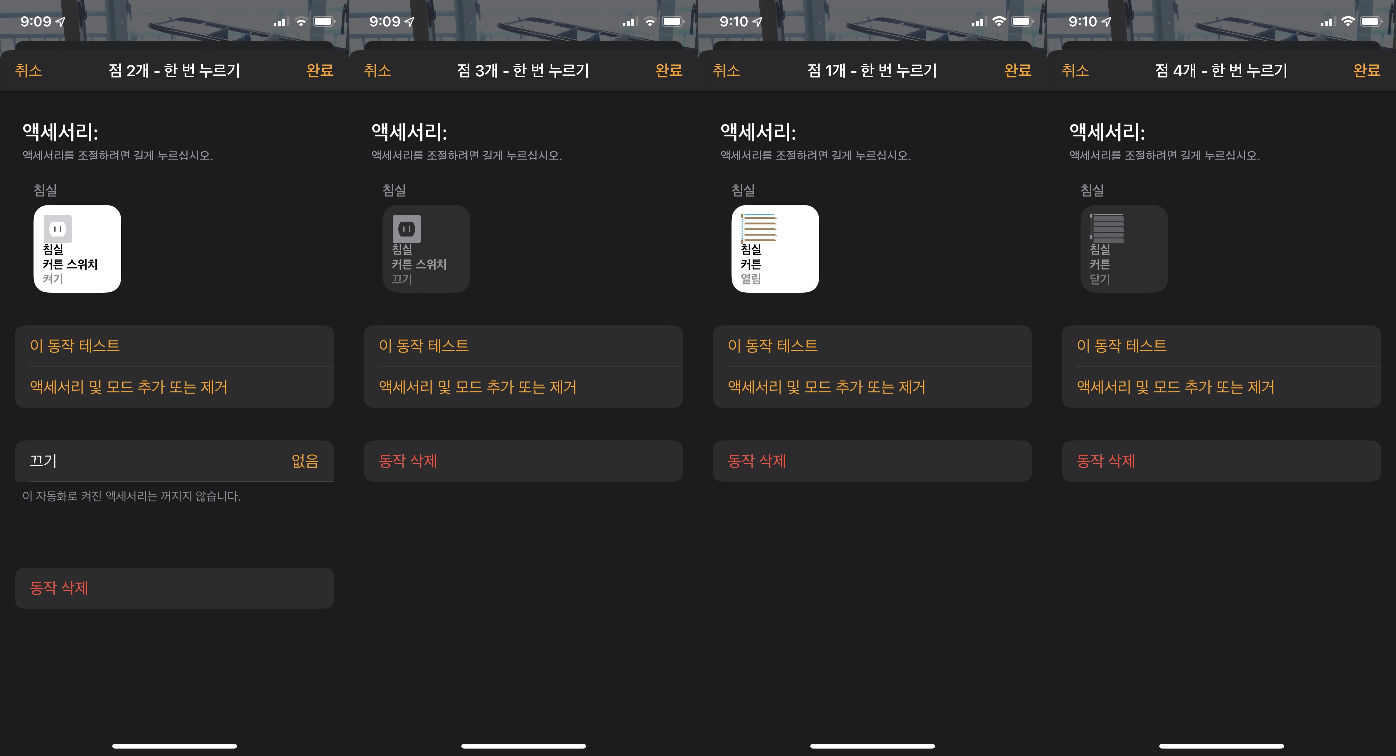 침실 탭 스위치는 커튼 박스 스위치와 전동 거튼의 온오프를 홈앱에서 간단하게 등록을 하였다.