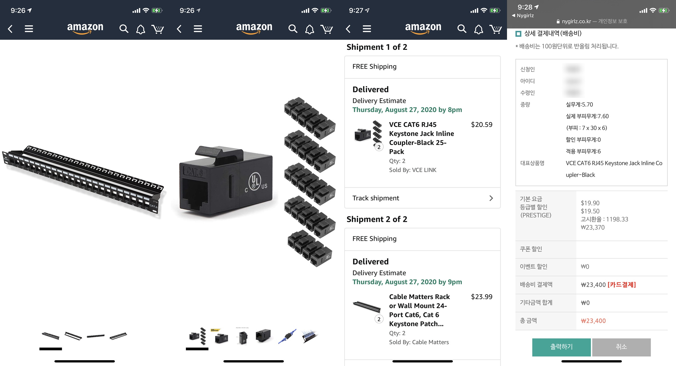 인라인 커플러(Inline Coupler)를 전량 아마존에서 구매하였으며,
