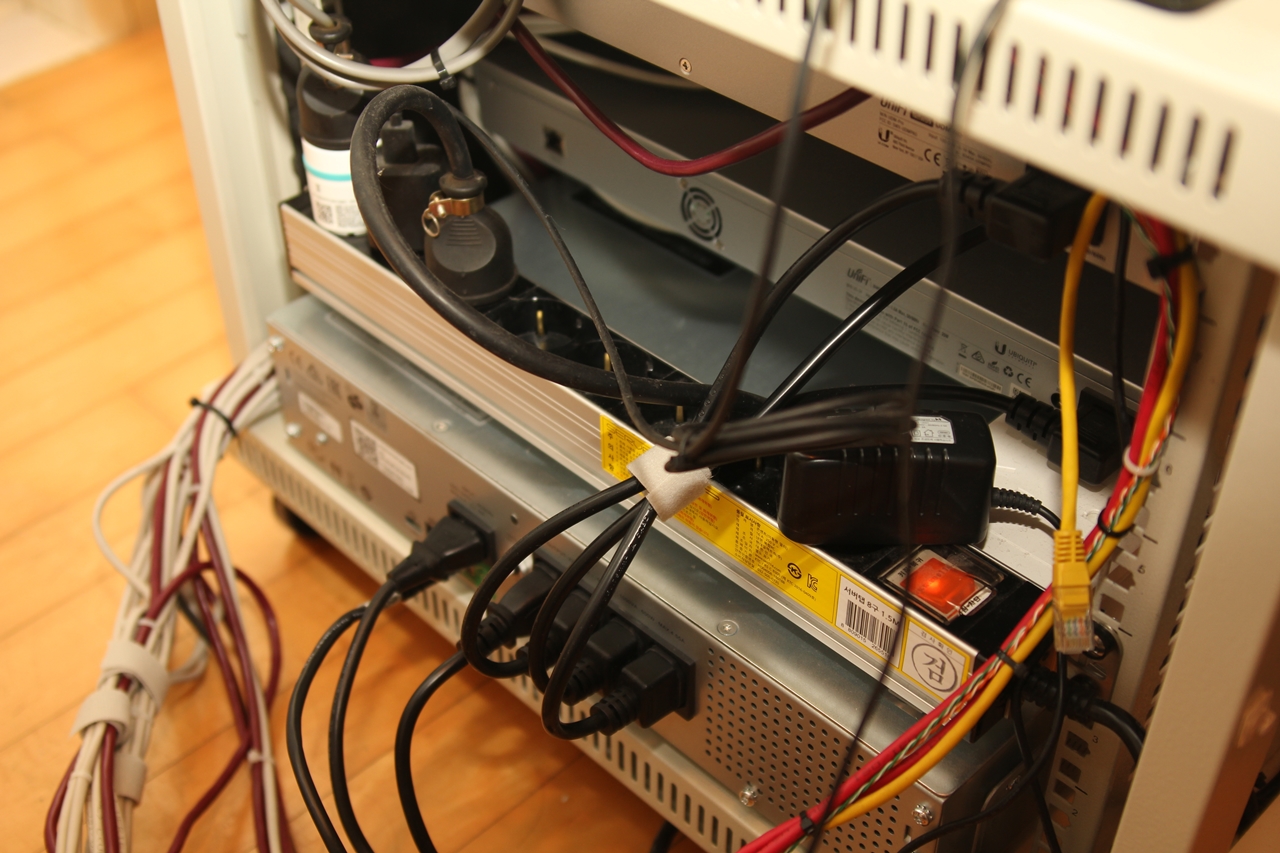 그리고 통신 허브랙 후면의 전원 케이블을 벨크로 타이로 정리하고서 UPS 설치 작업을 마무리하였다.
