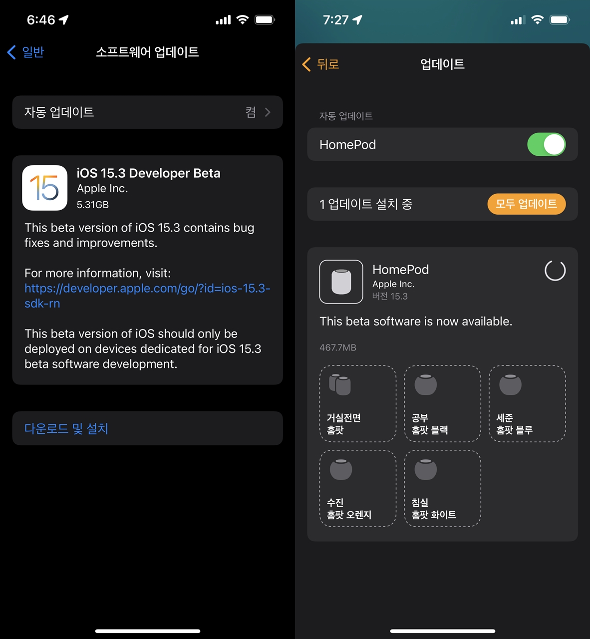 오늘은 새벽에 릴리즈 된 홈팟 audioOS 15.3 beta 1을 설치하고 새로운 기능을 잠깐 살펴보았다.