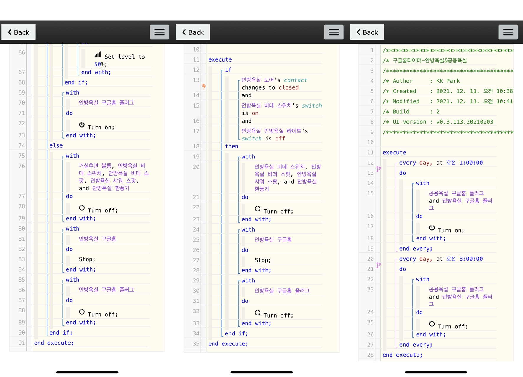 그리고 화장실 벽 스위치의 OnOff와 연동하여 전원을 공급/차단하는 웹코어 피스톤에