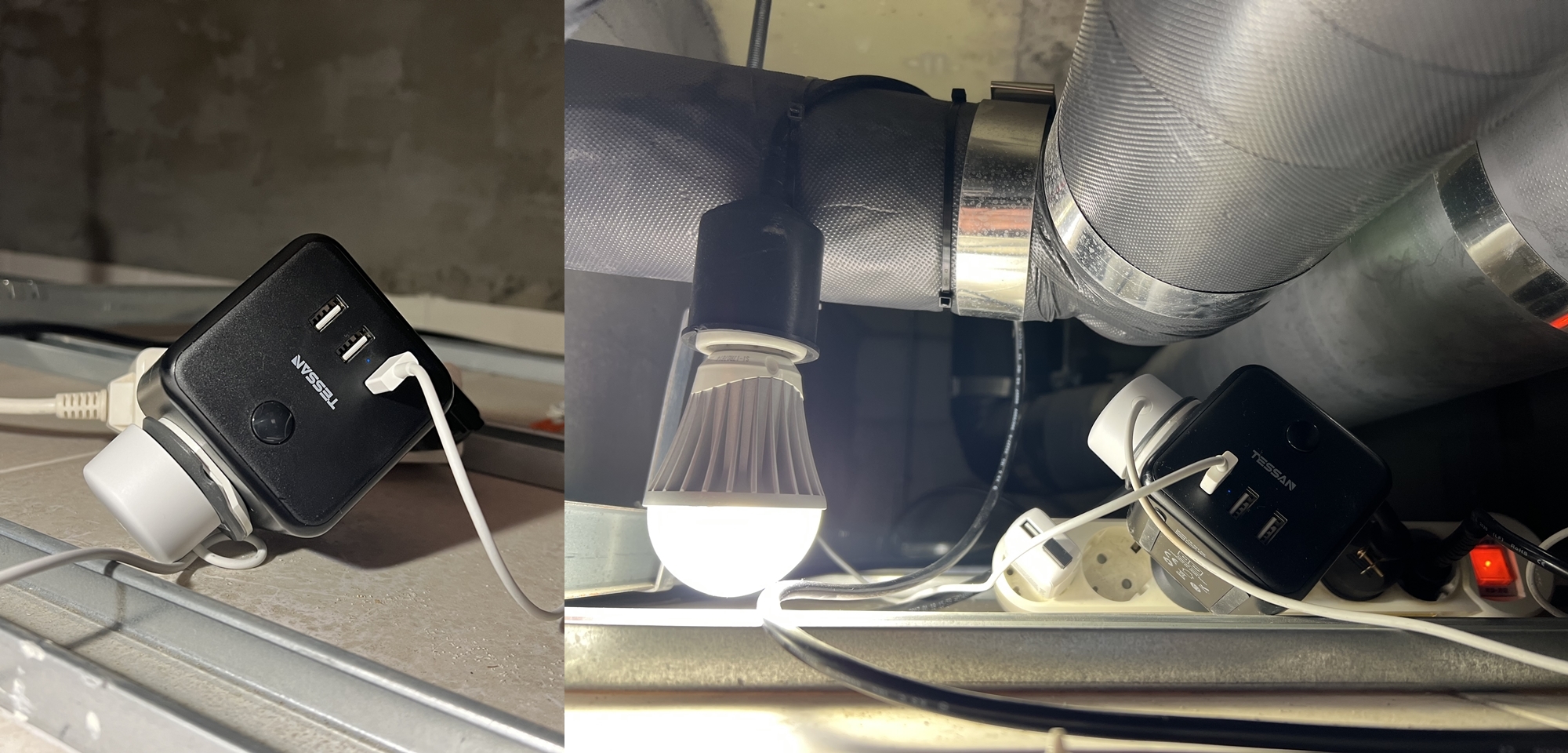 기존 스마트 플러그 위에 하나씩 꼽아주고, 구글홈과 아이폰 벽시계의 전원 코드를 연결하여 주었다.