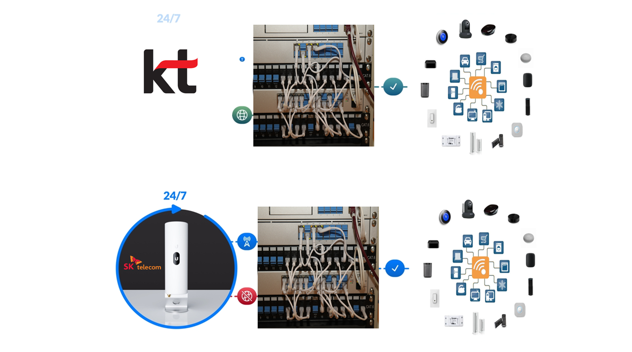 평상시엔 KT 인터넷선으로 서비스를 받다가, 장애가 발생하면 SKT LTE망으로 자동 전환하는 시스템으로 결정했는데,