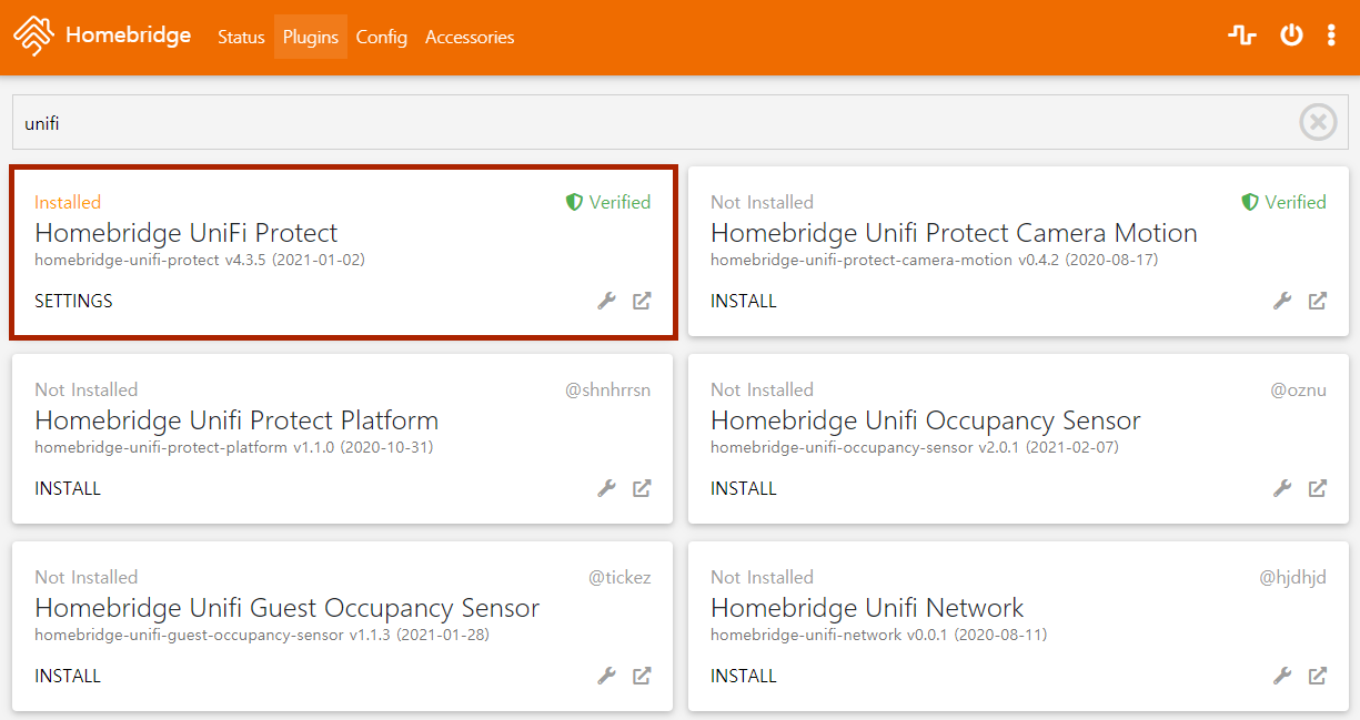 홈브릿지 플러그인의 품질은 천차만별이어서 인증 마크(Verified)가 붙어 있고,