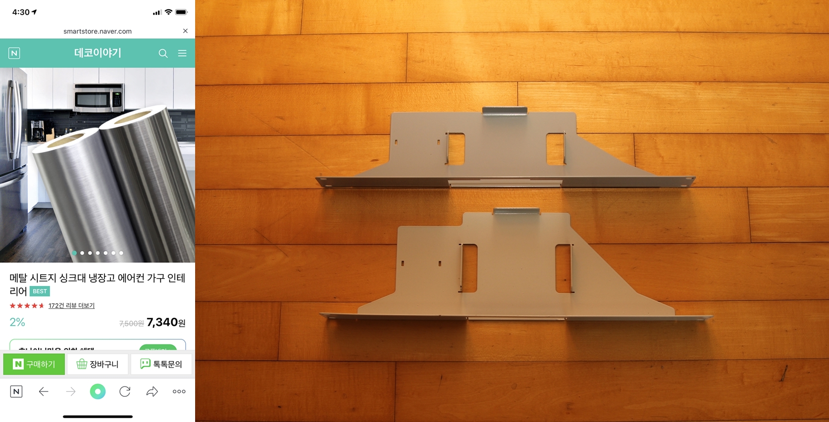 제품을 수령하고 보니 철(Steel) 재질이었으며 두 놈의 색상도 약간 차이가 나서,