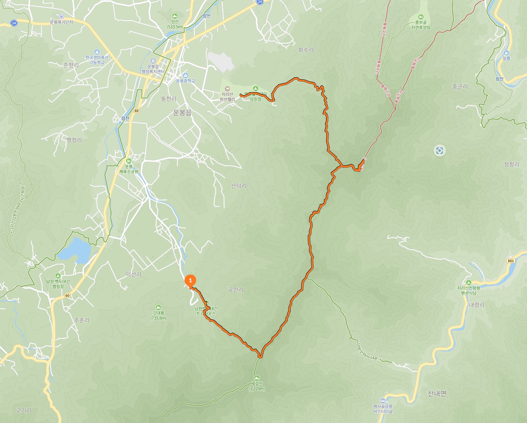 삼거리에서 바래봉 정상을 왕복 후 용산마을 주차장으로 하산하였는데,