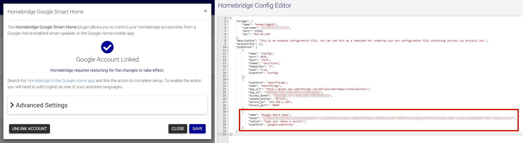 그리고 홈브릿지 컨테이너를 리부팅하면 Config 파일에 구글 스마트 홈을 자기가 알아서 추가를 하더라.