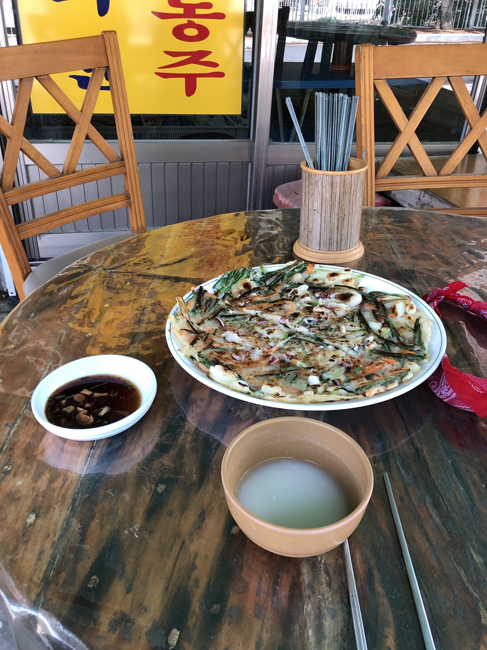 마을 슈퍼의 촌로께서 만들어주신 해물파전과 막걸리로 오늘 산행을 자축하고,