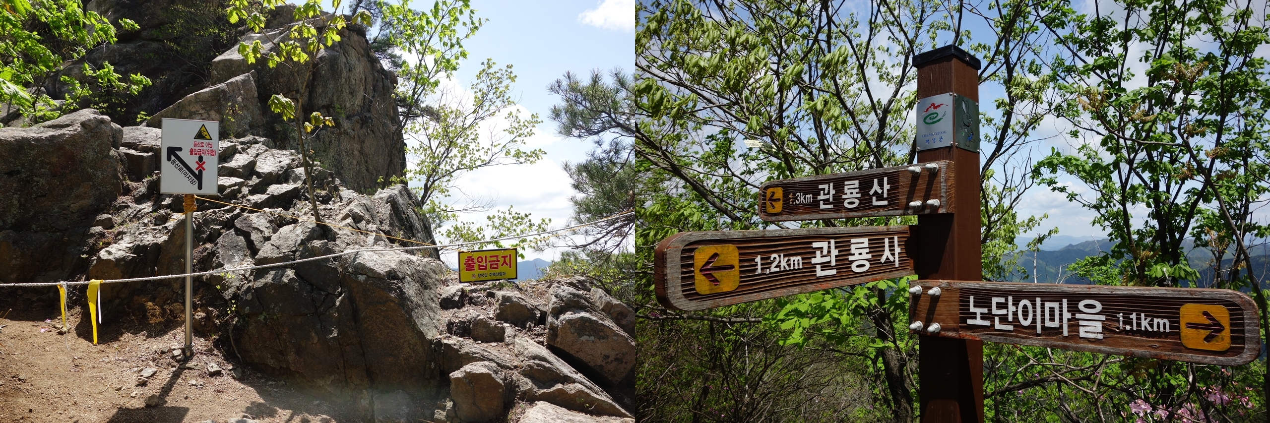 그곳에서 노단이마을 방향으로는 공식적인 등산로가 막혀있어서,