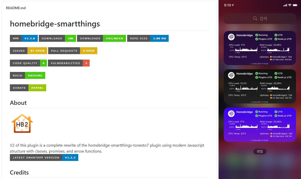 우리집 스마트홈 플랫폼인 홈킷과 스마트싱스(이하 ST) 허브를 연결하는 홈브릿지 플러그인을