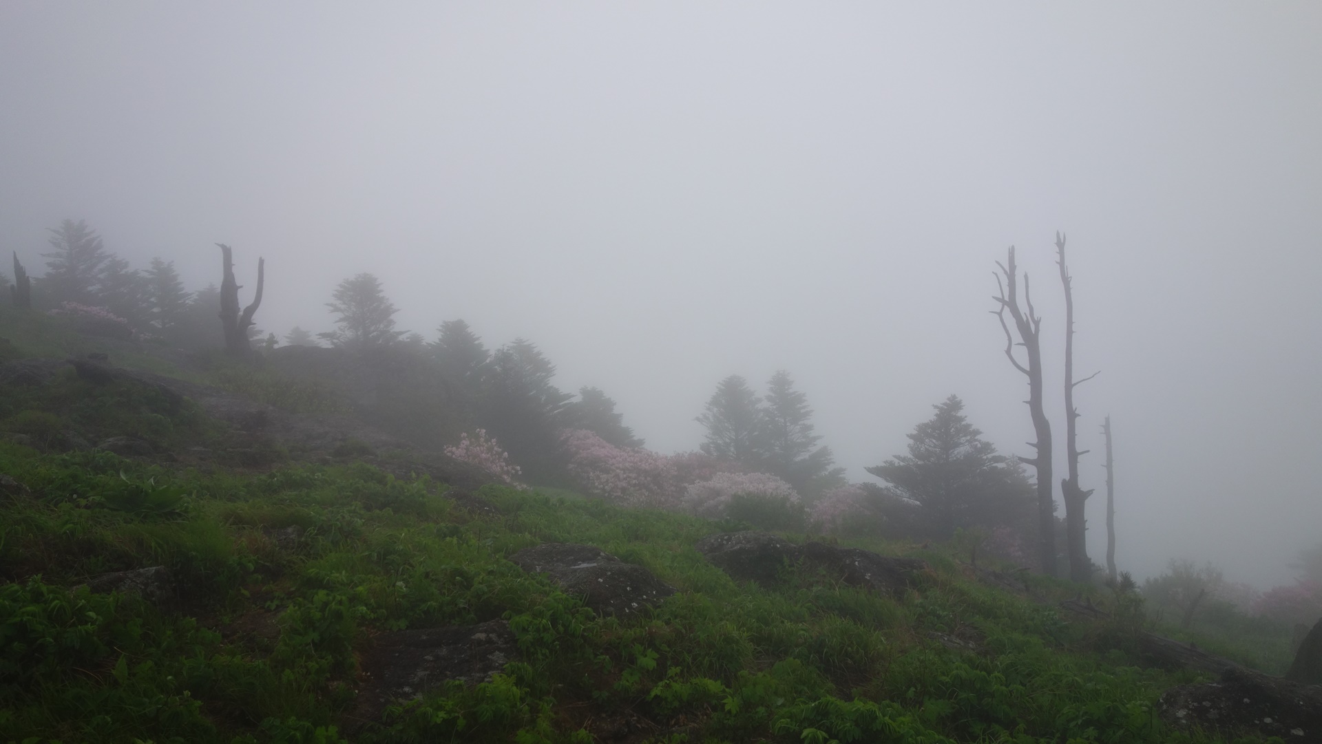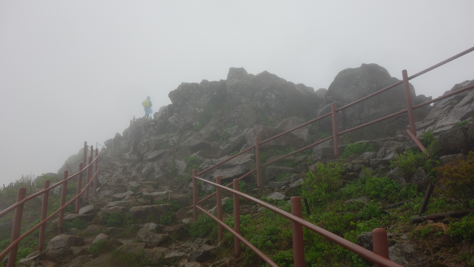 정상에서 조금 더 머물고 싶었으나 이슬비에 조망도 꽝이고,